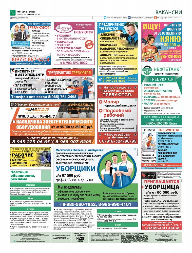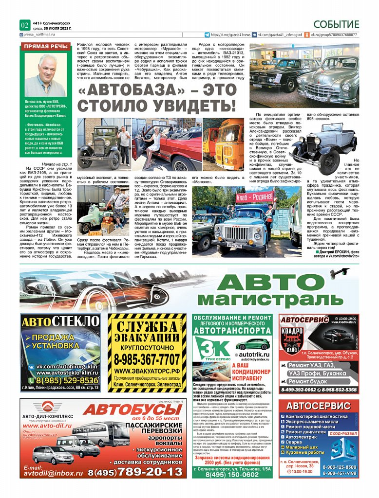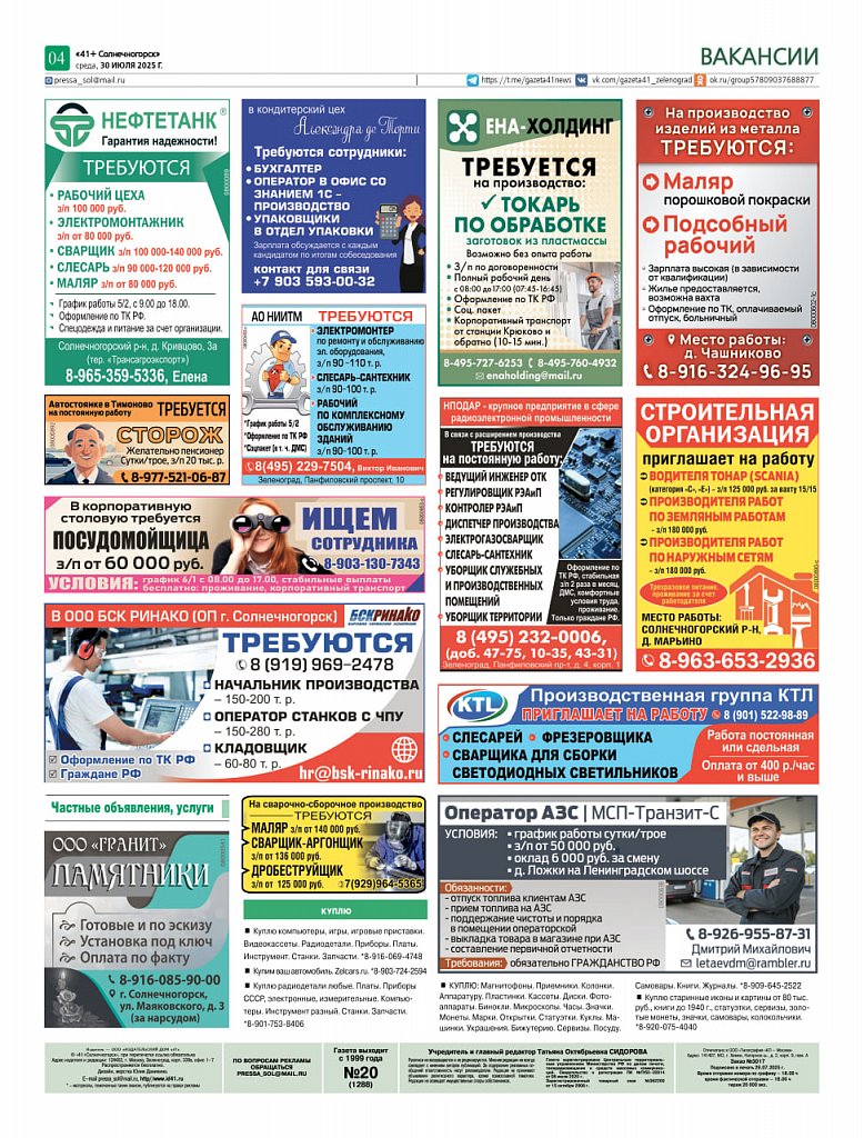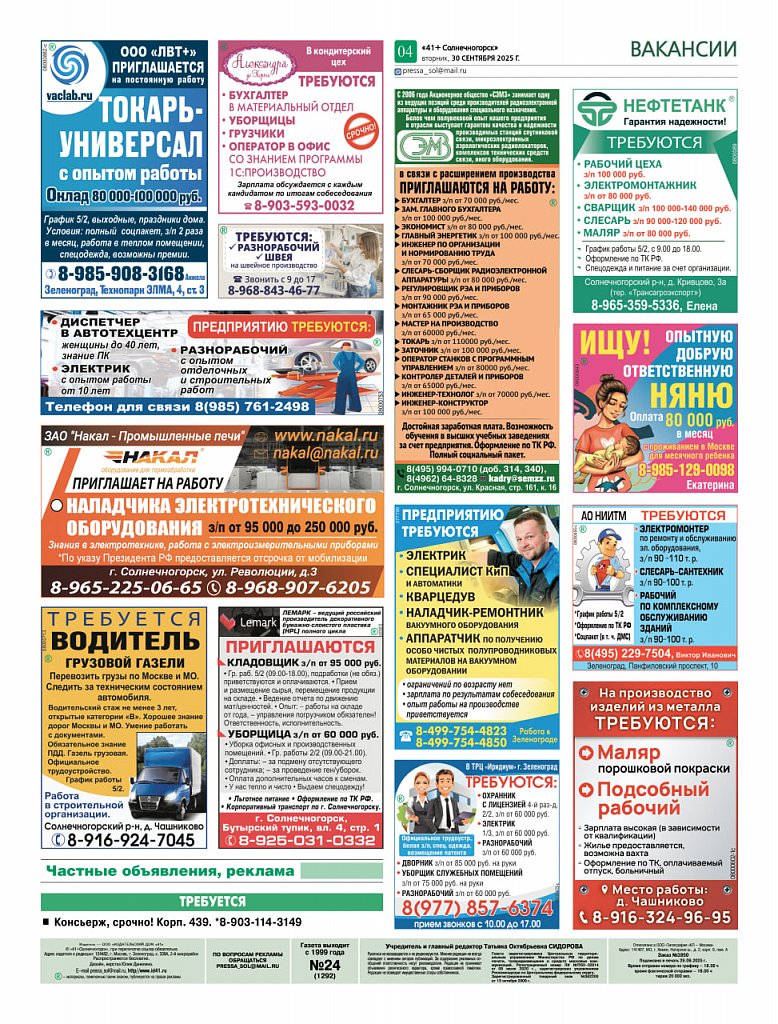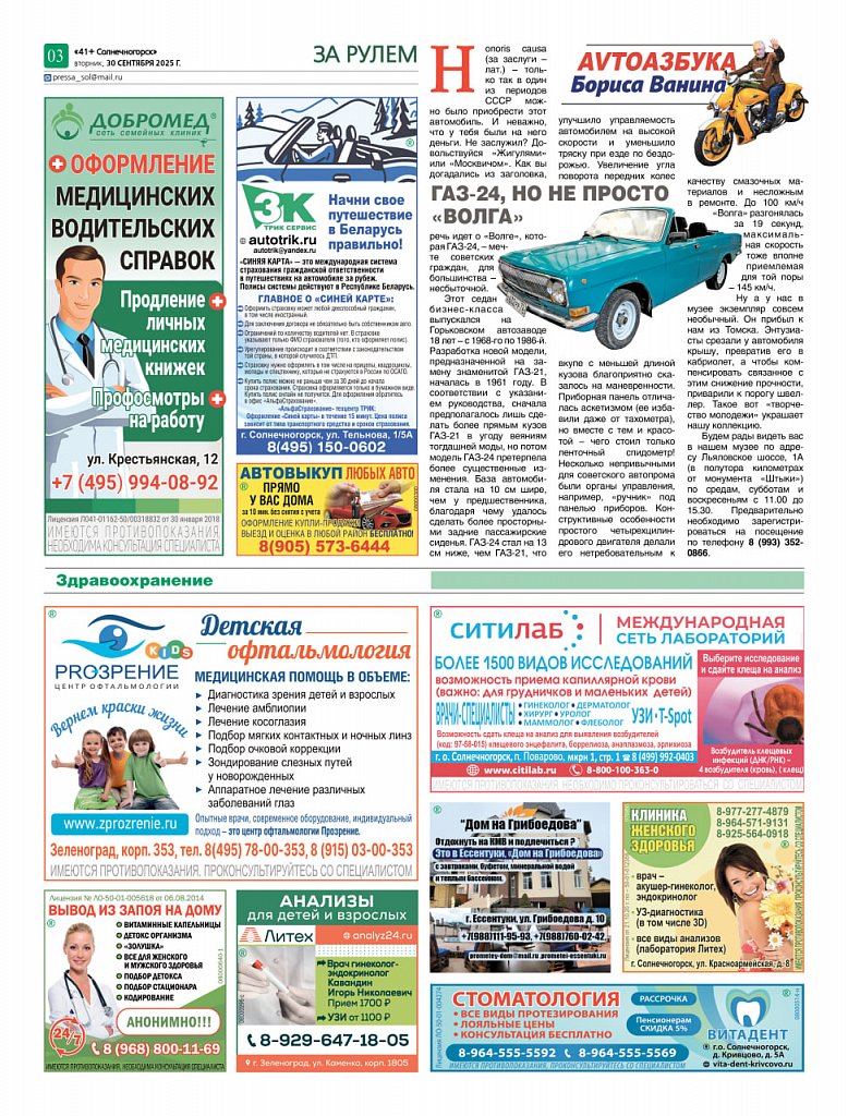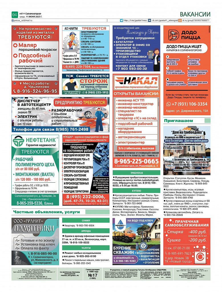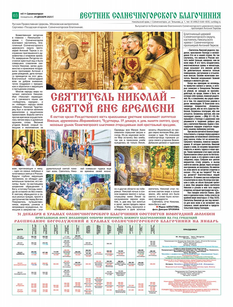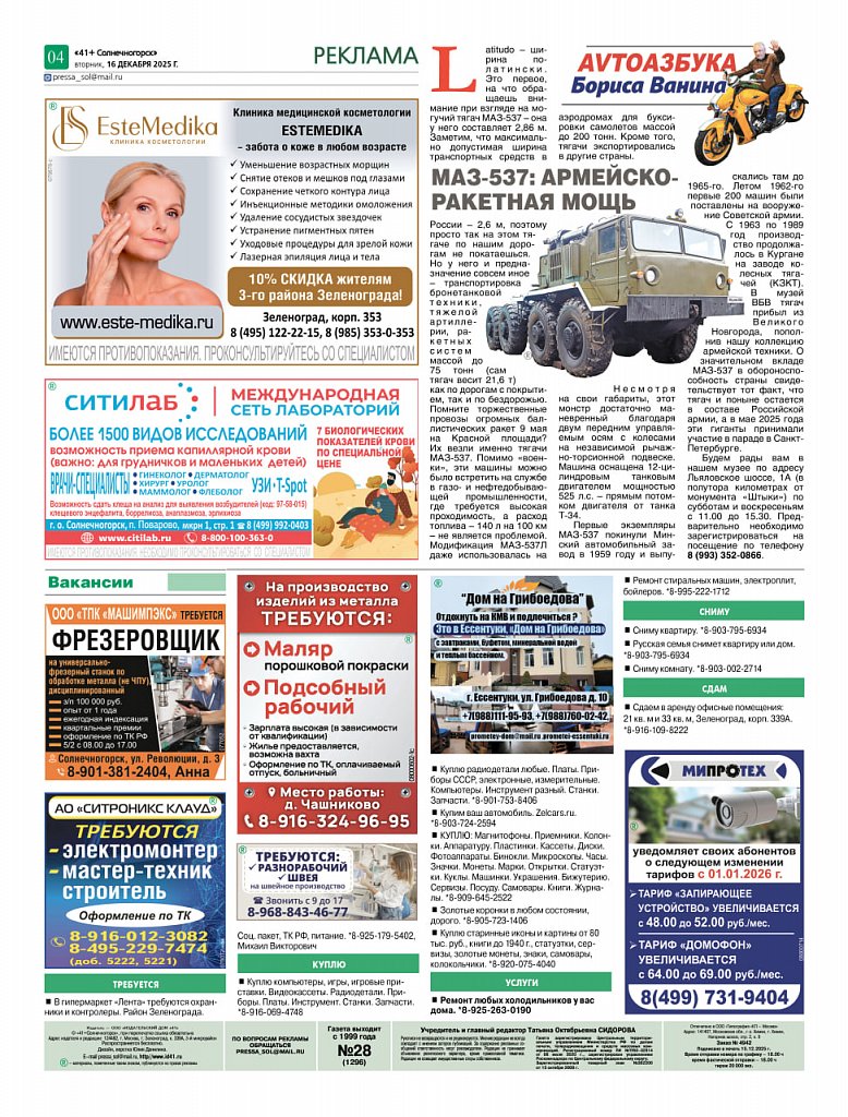 Газета "41 + Солнечногорск" издается с января 1999 года. На протяжении всего этого времени жители Солнечногорского района получают оперативную информацию из первых рук от Администрации района, городских и сельских поселений, социальных служб Солнечногорского района. Газета рекламно- информационная выходит каждый вторник и распространяется бесплатно во все почтовые ящики Солнечногорска, а так же в городских и сельских поселениях Солнечногорского района.