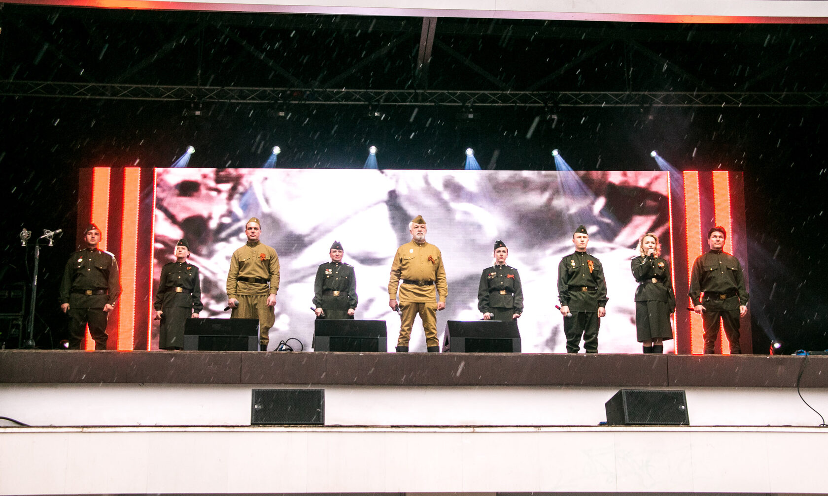 Открыли концертную программу участник шоу «Голос» и «Фабрика звезд» Роман Архипов и коллектив Московского казачьего хора. После все присутствующие смогли насладиться просмотром советских фильмов в кинотеатре под открытым небом. Также организаторы подготовили выступления духового оркестра Солнечногорской детской школы искусств и концертные номера творческих коллективов округа. Закроют вечер выступления ВИА «Альбом», группы «Баян-Микс» и «Мужского камерного хора» Валерия Рыбина.