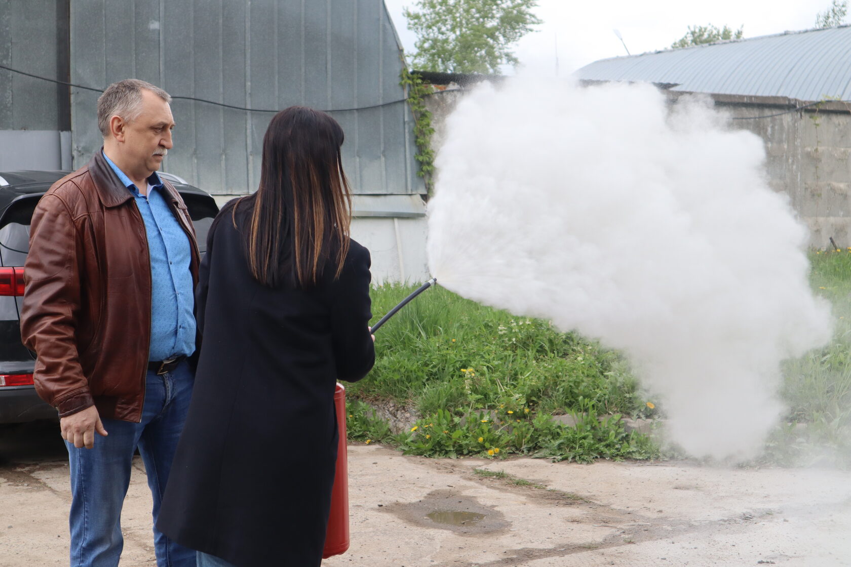 Начальником службы пожарной безопасности Филиала, в ходе проведения инструктажа организовано практическое применение каждым сотрудником порошкового и углекислотного огнетушителя в действии.