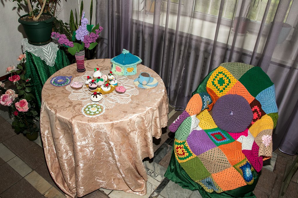 Все желающие смогли посетить выставку вязанных изделий учениц студии «Мастерицы» мастерской декоративно-прикладного творчества «Радуга ремесел». Руководитель студии Ольга Сафронова познакомила зрителей с различными техниками вязания, провела демонстрационный мастер-класс.