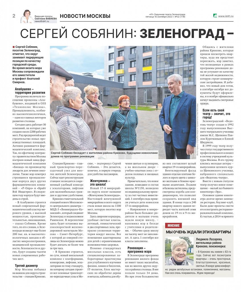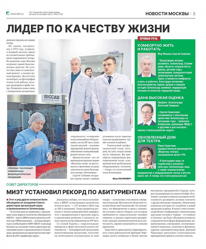 СЕРГЕЙ СОБЯНИН: Зеленоград - лидер по качеству жизни