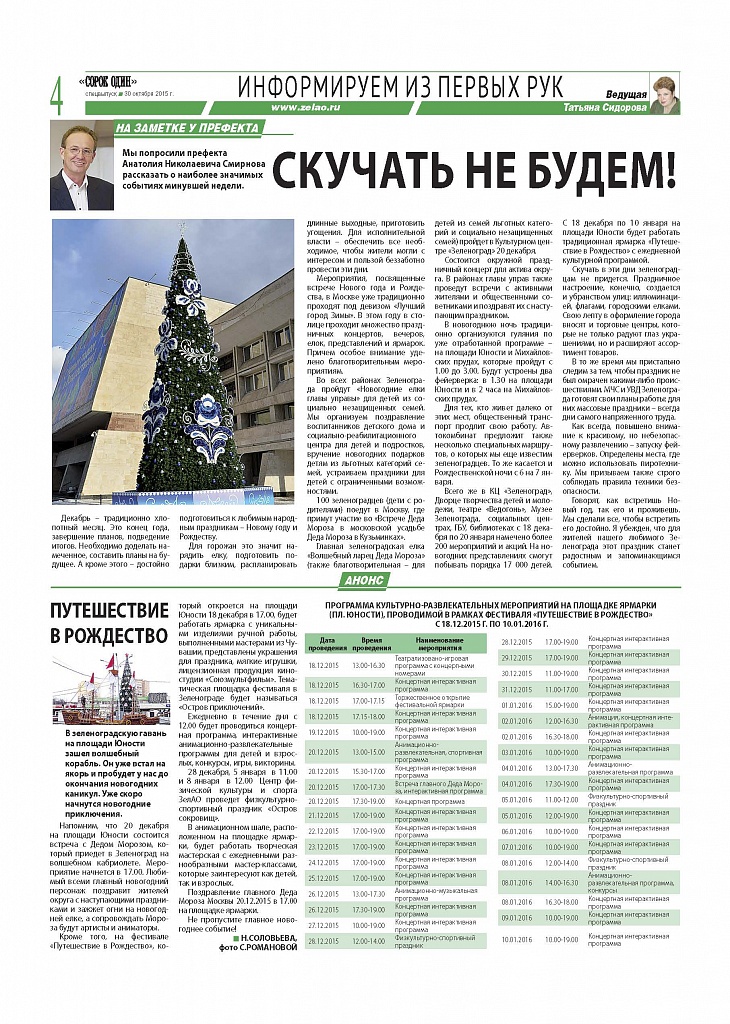 Префект Анатолий Смирнов рассказал о новогодних мероприятиях в Зеленограде