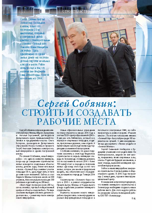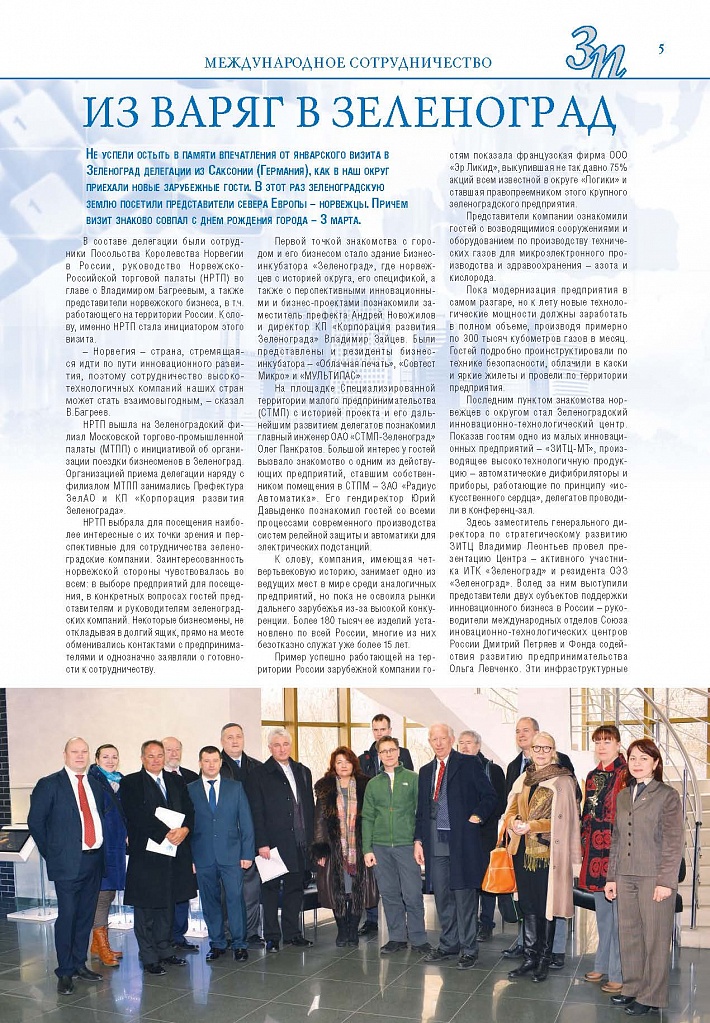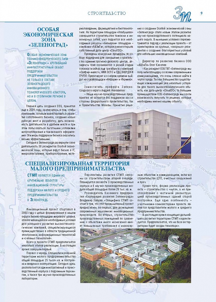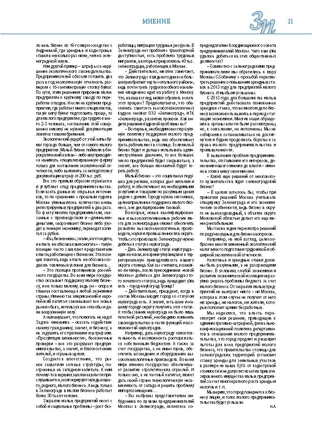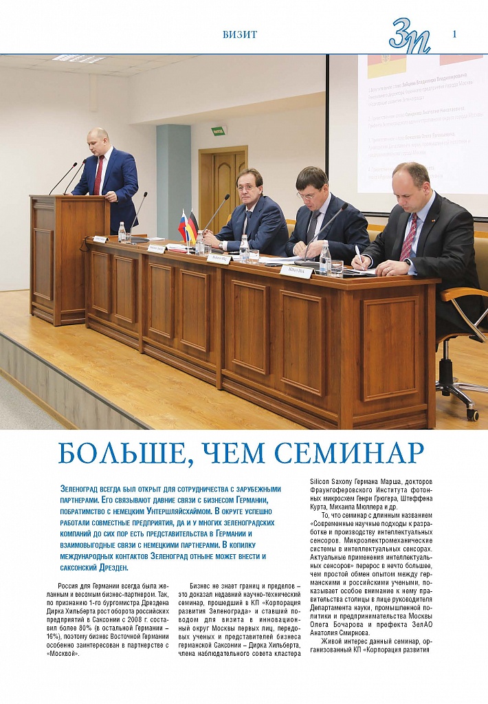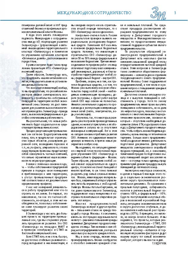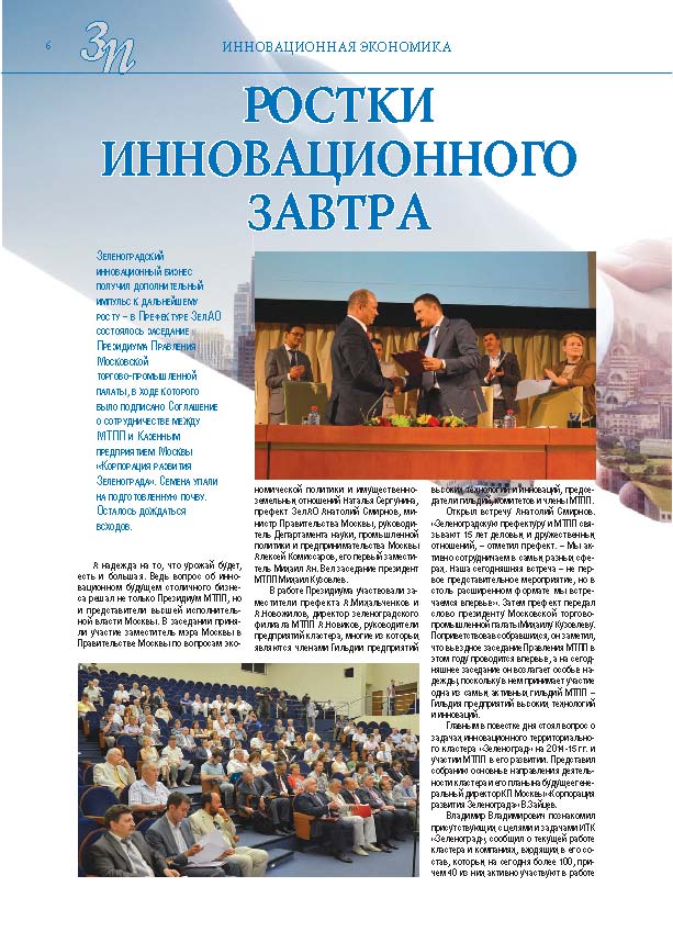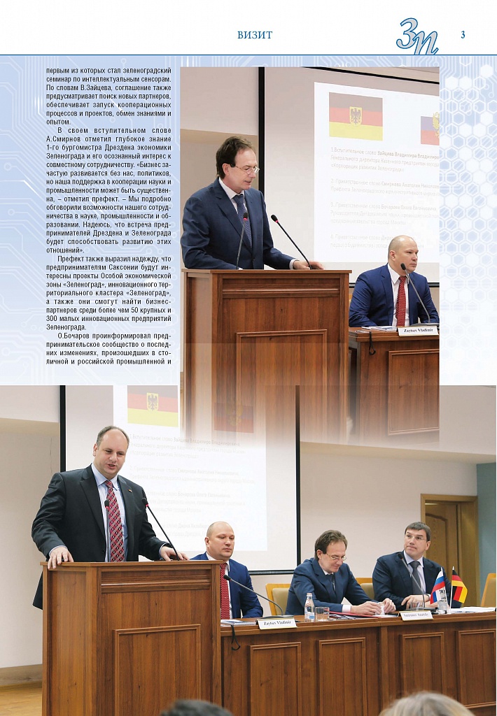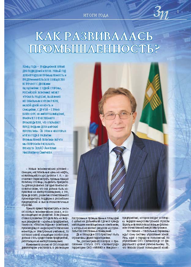 Имиджевое издание, в котором публикуются аналитические статьи и новости зеленоградского бизнеса, а также интервью с предпринимателями округа. Издается при поддержке префектуры ЗелАО с 2005 года. Распространение – префектура ЗелАО, образования самоуправления, ЦРП, Бизнес-центры, крупные бизнес-структуры.