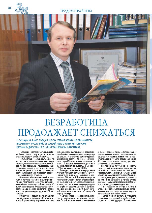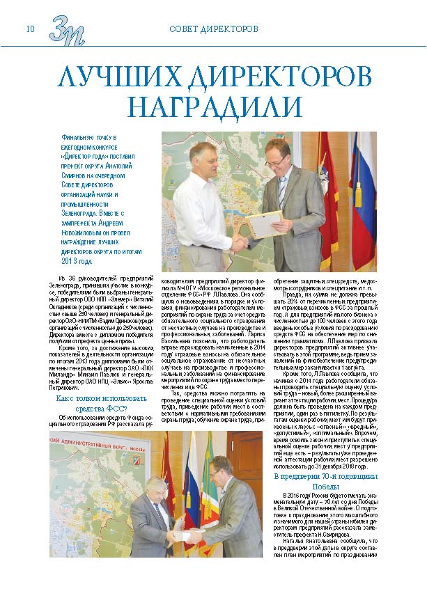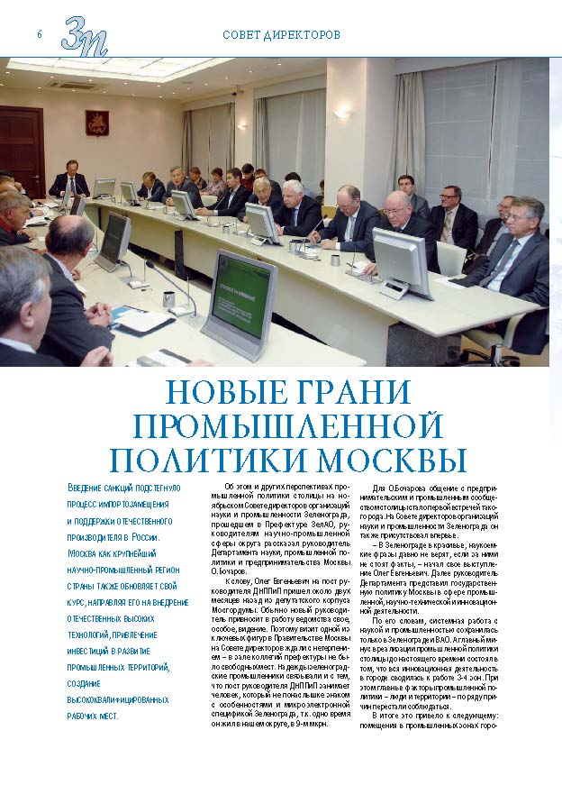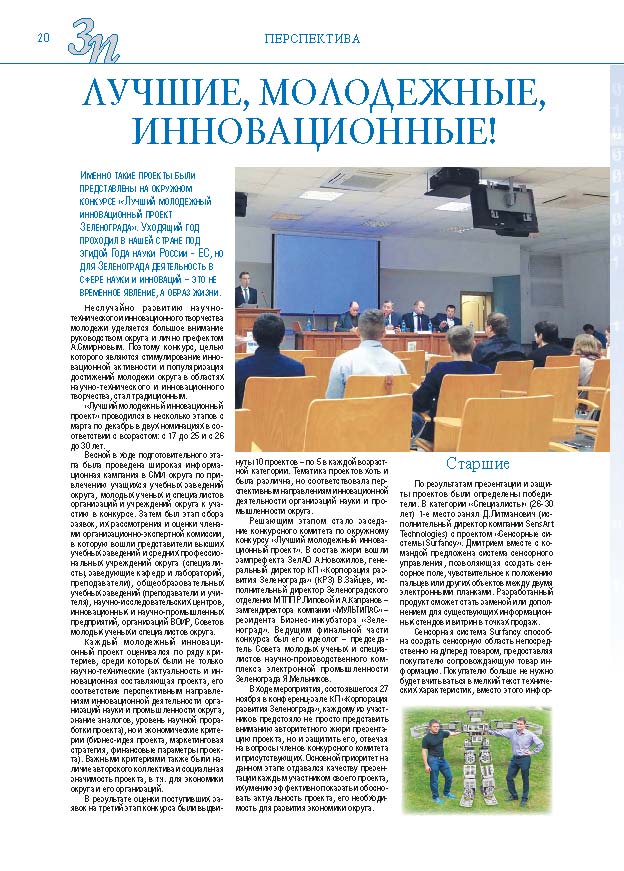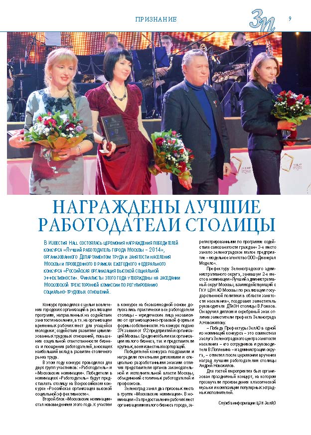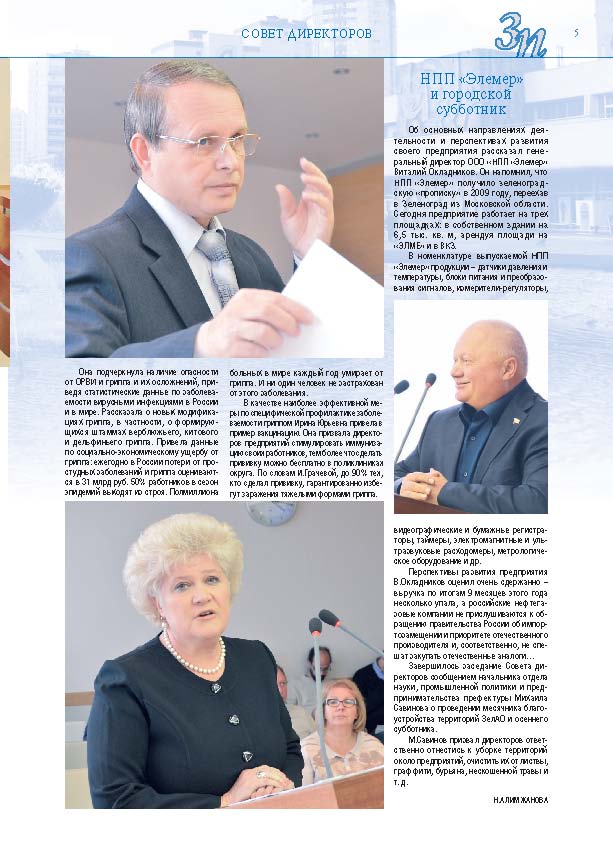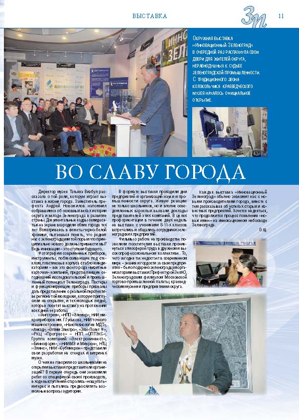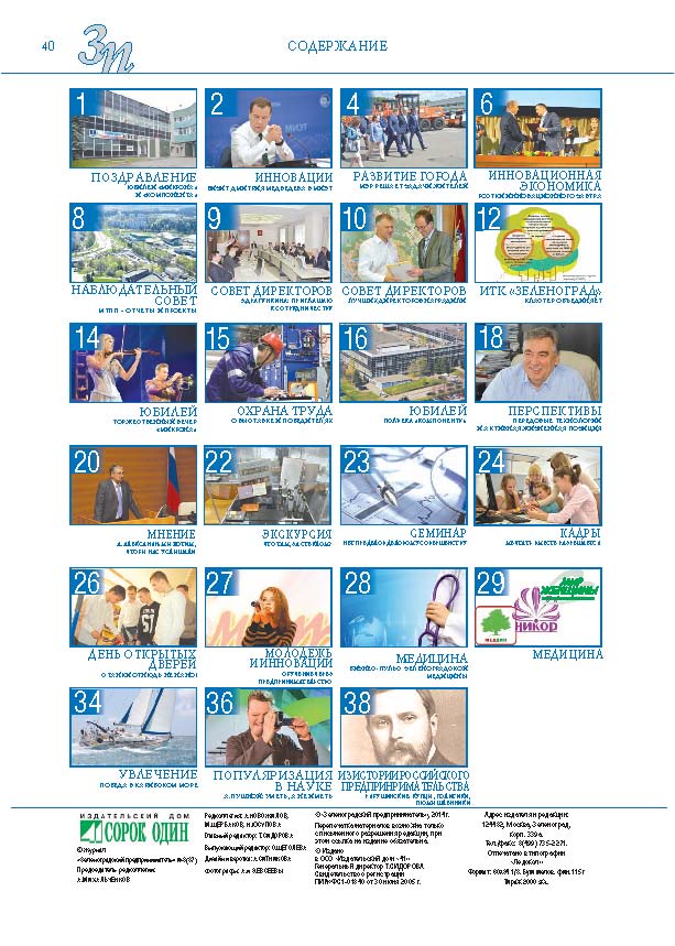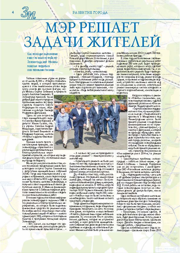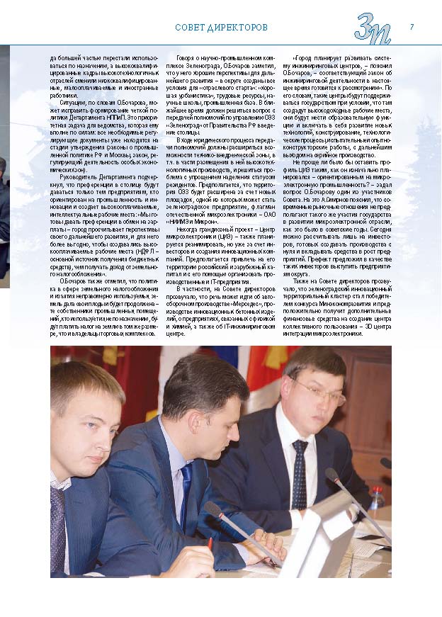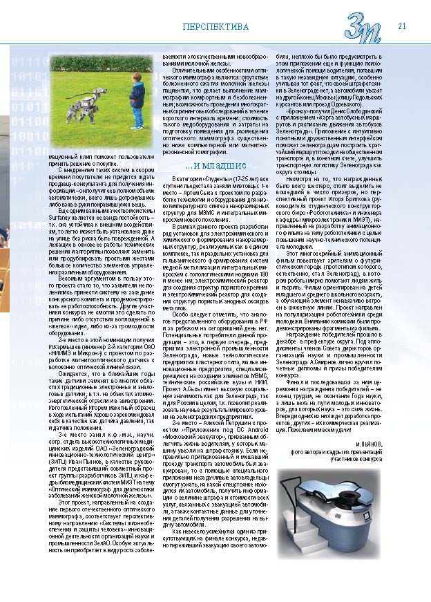 Имиджевое издание, в котором публикуются аналитические статьи и новости зеленоградского бизнеса, а также интервью с предпринимателями округа. Издается при поддержке префектуры ЗелАО с 2005 года. Распространение – префектура ЗелАО, образования самоуправления, ЦРП, Бизнес-центры, крупные бизнес-структуры.