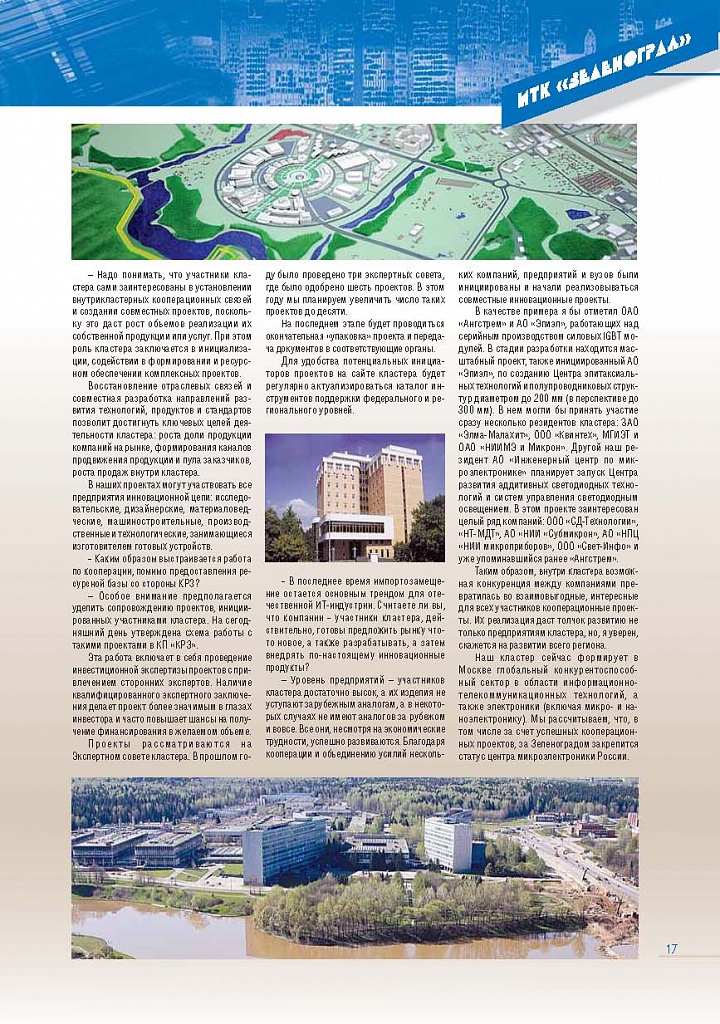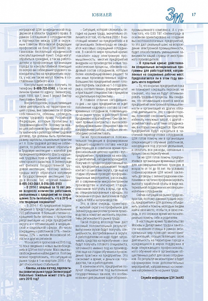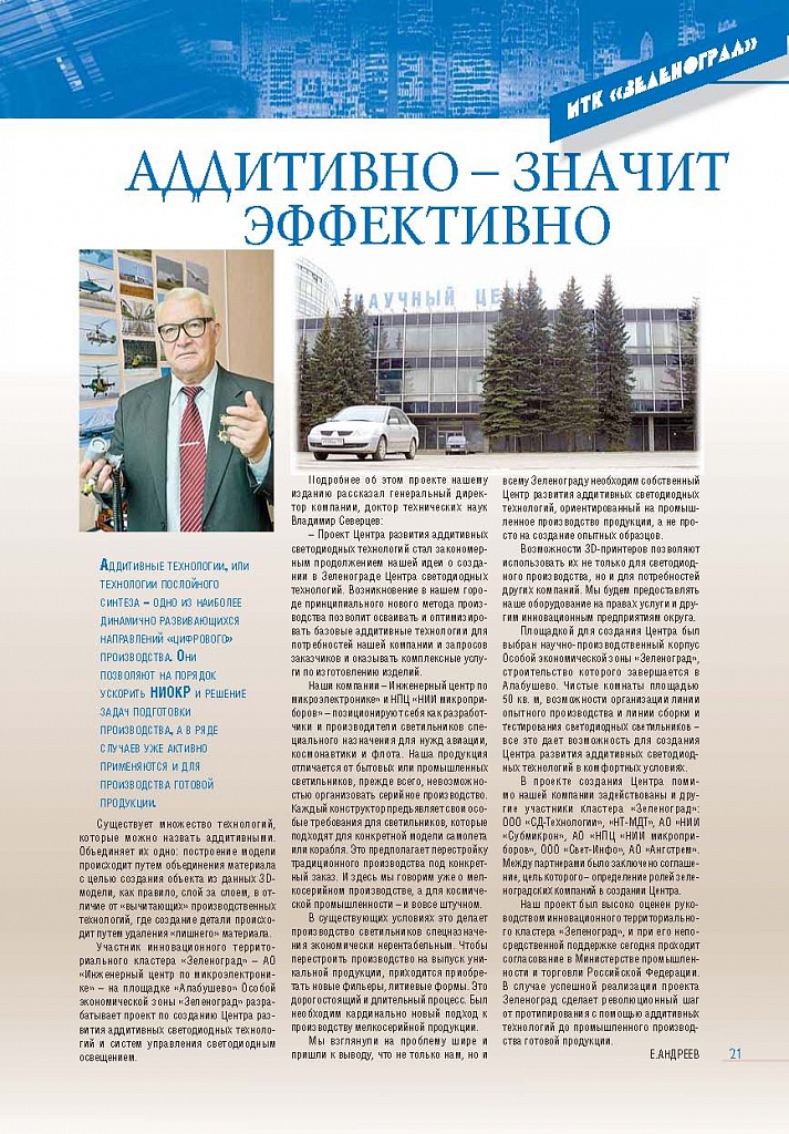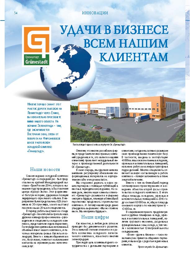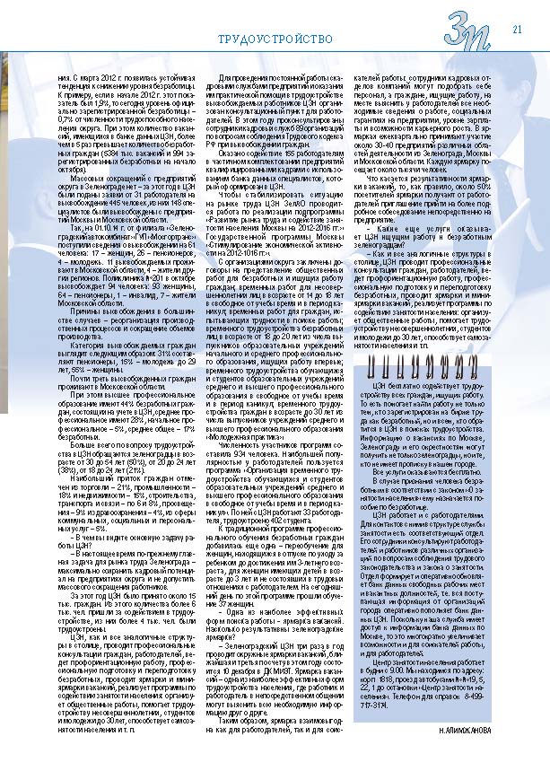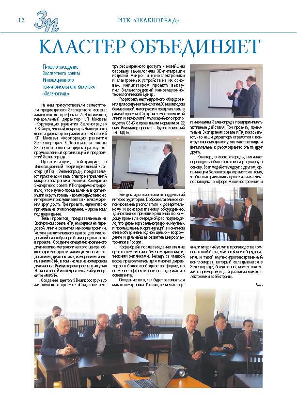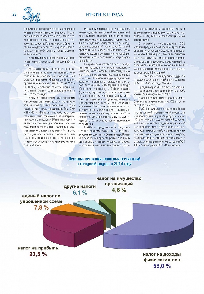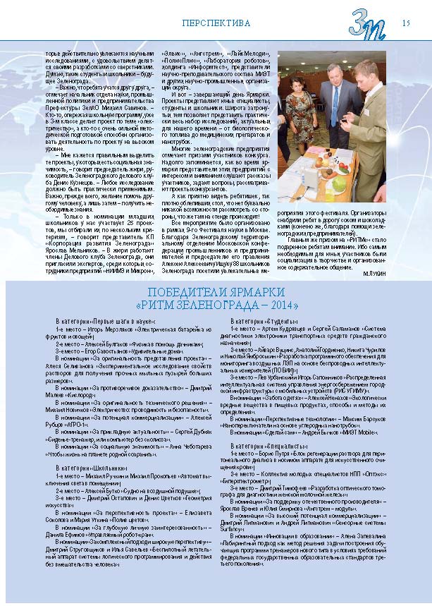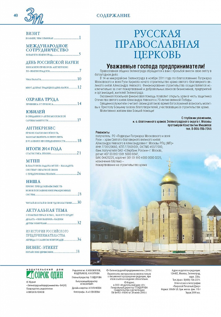 Имиджевое издание, в котором публикуются аналитические статьи и новости зеленоградского бизнеса, а также интервью с предпринимателями округа. Издается при поддержке префектуры ЗелАО с 2005 года. Распространение – префектура ЗелАО, образования самоуправления, ЦРП, Бизнес-центры, крупные бизнес-структуры.