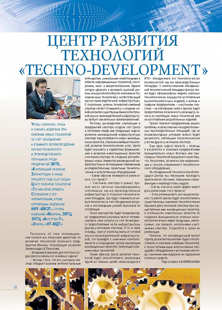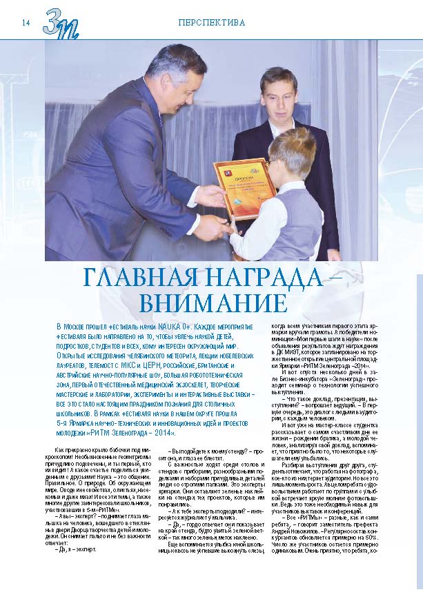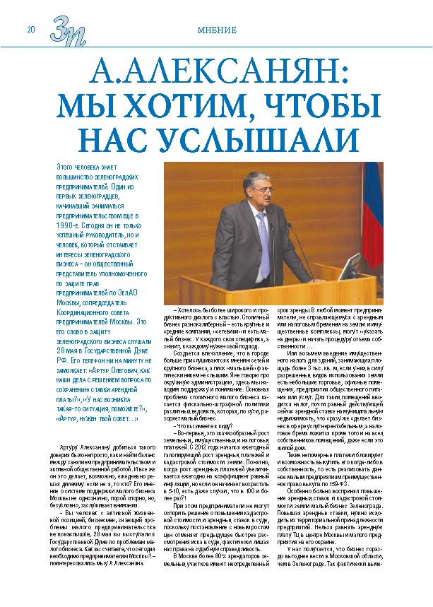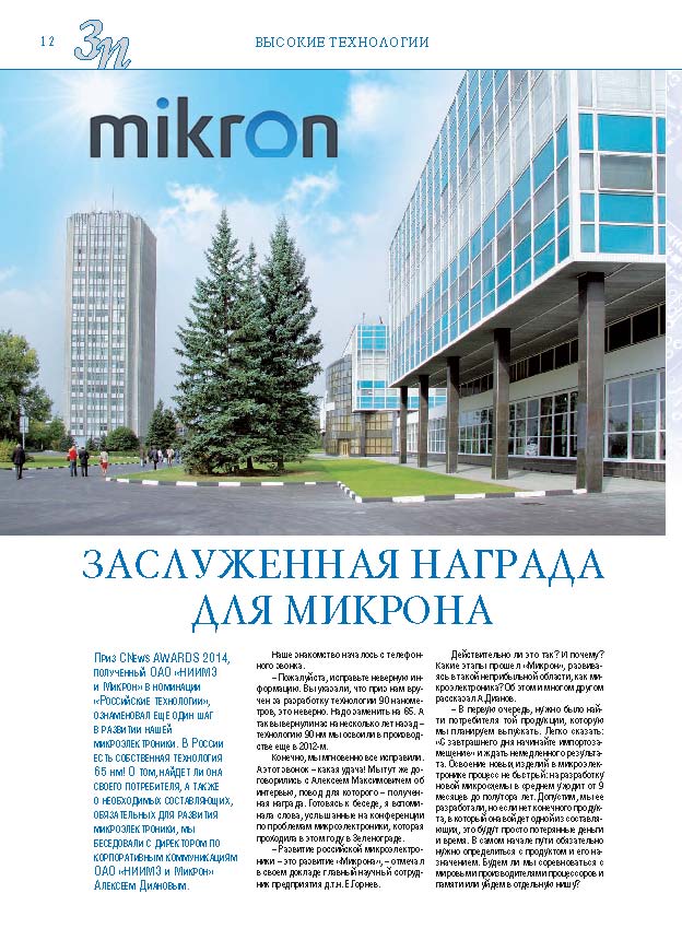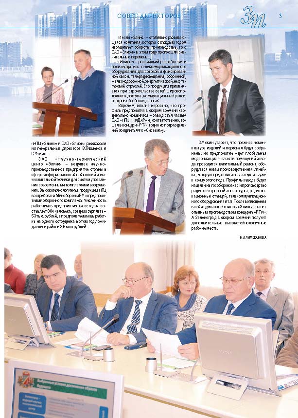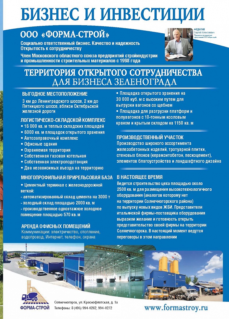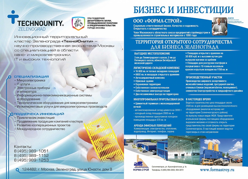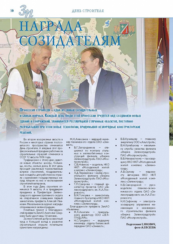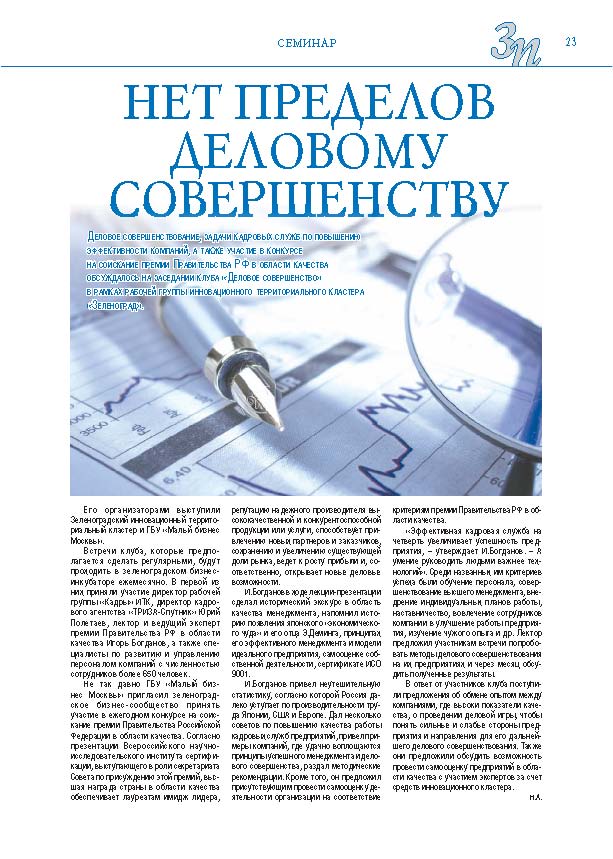 Имиджевое издание, в котором публикуются аналитические статьи и новости зеленоградского бизнеса, а также интервью с предпринимателями округа. Издается при поддержке префектуры ЗелАО с 2005 года. Распространение – префектура ЗелАО, образования самоуправления, ЦРП, Бизнес-центры, крупные бизнес-структуры.