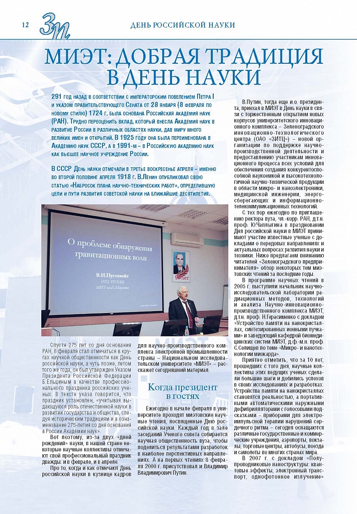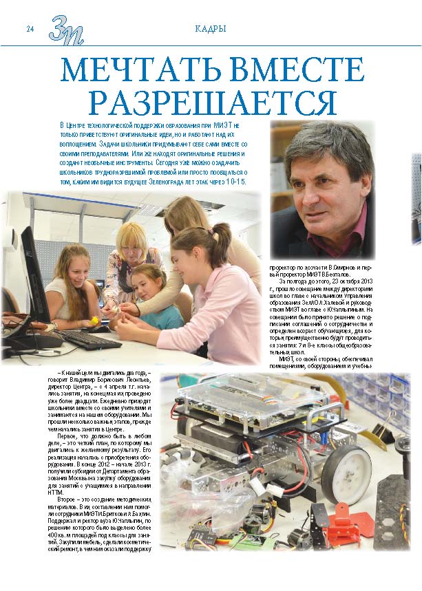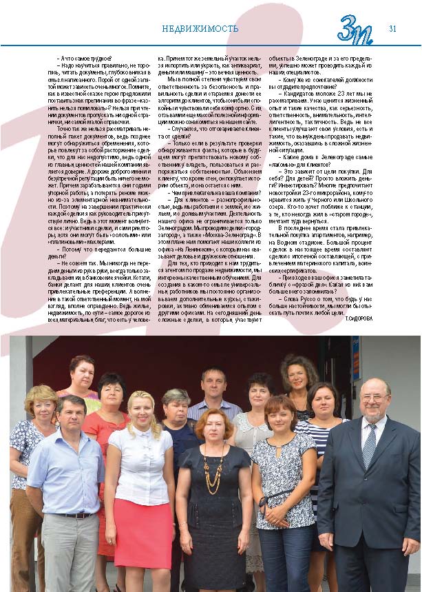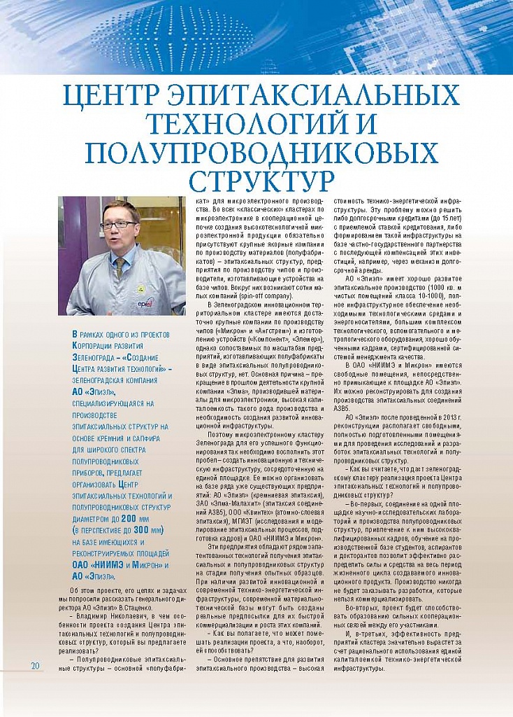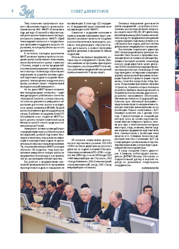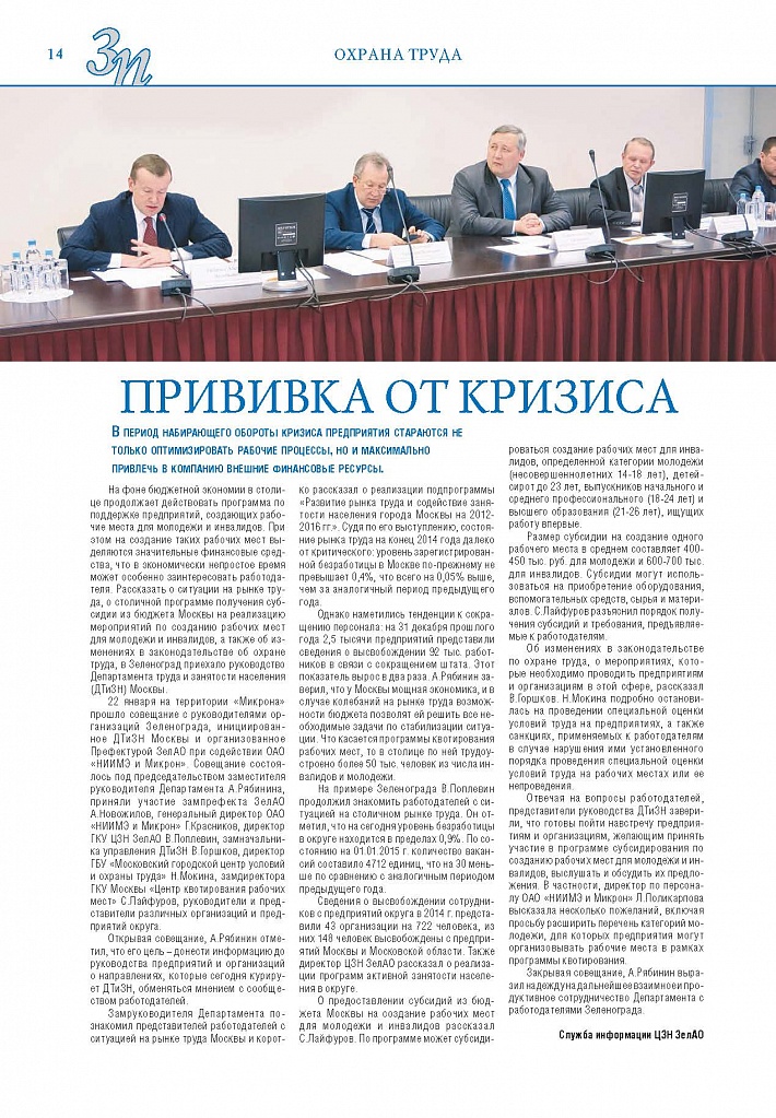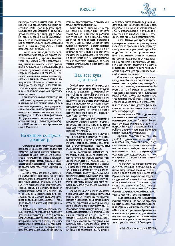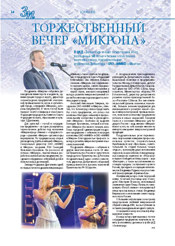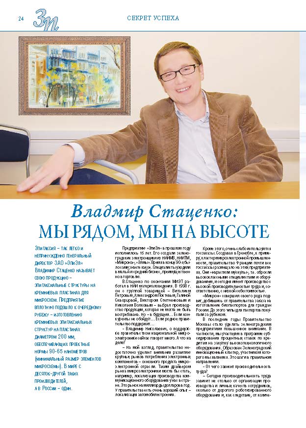 Имиджевое издание, в котором публикуются аналитические статьи и новости зеленоградского бизнеса, а также интервью с предпринимателями округа. Издается при поддержке префектуры ЗелАО с 2005 года. Распространение – префектура ЗелАО, образования самоуправления, ЦРП, Бизнес-центры, крупные бизнес-структуры.