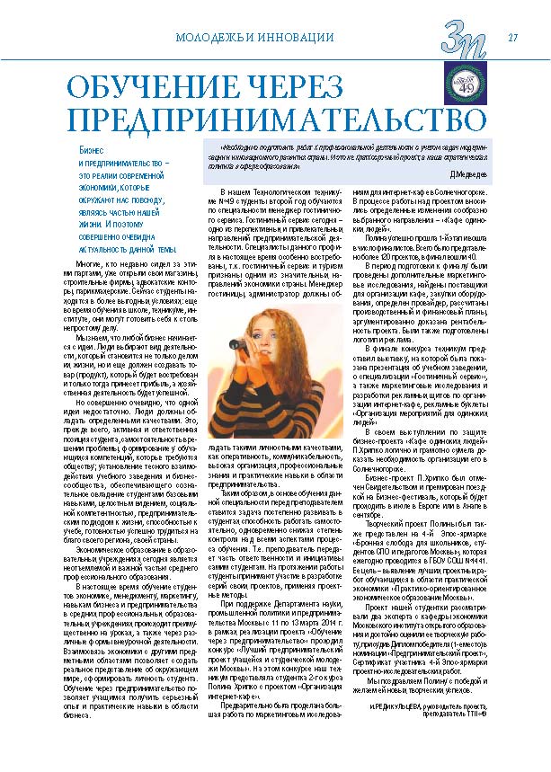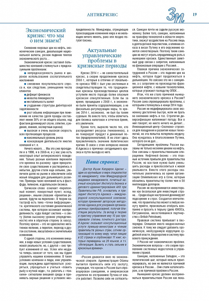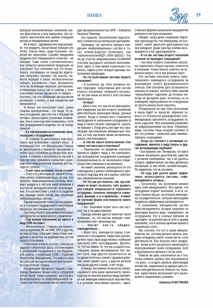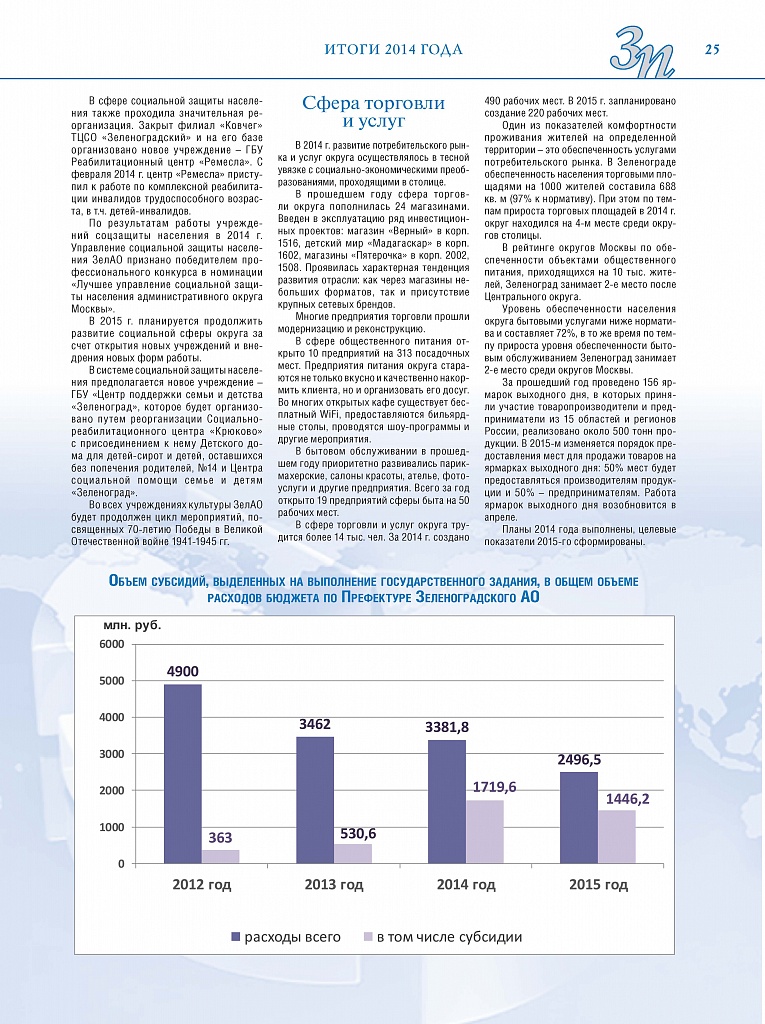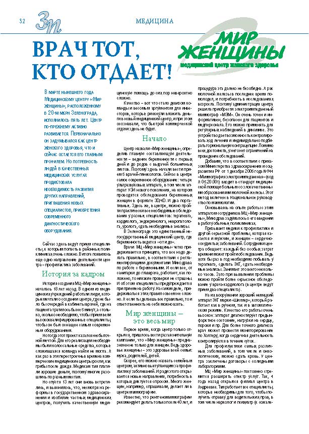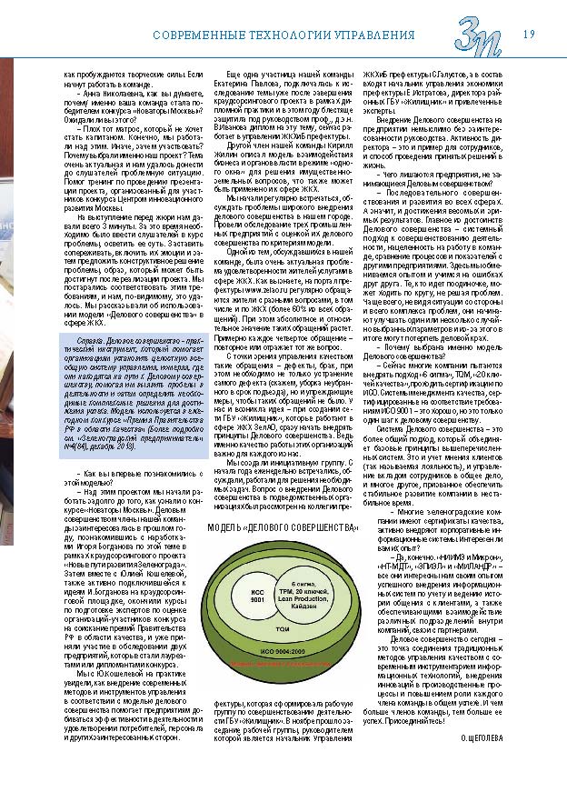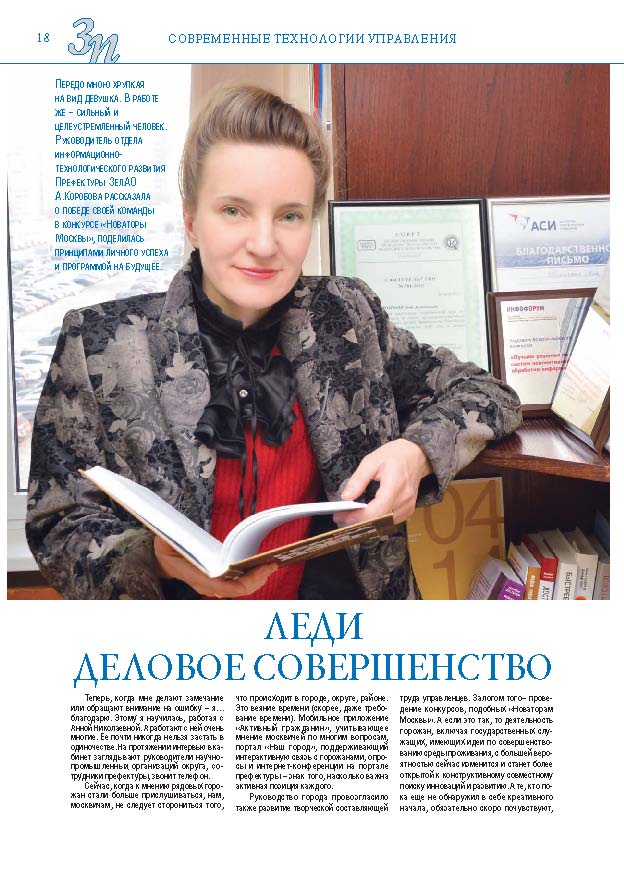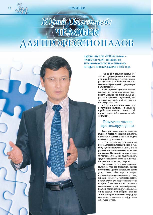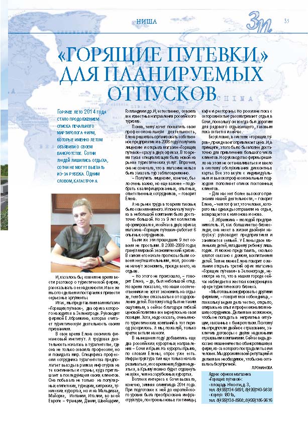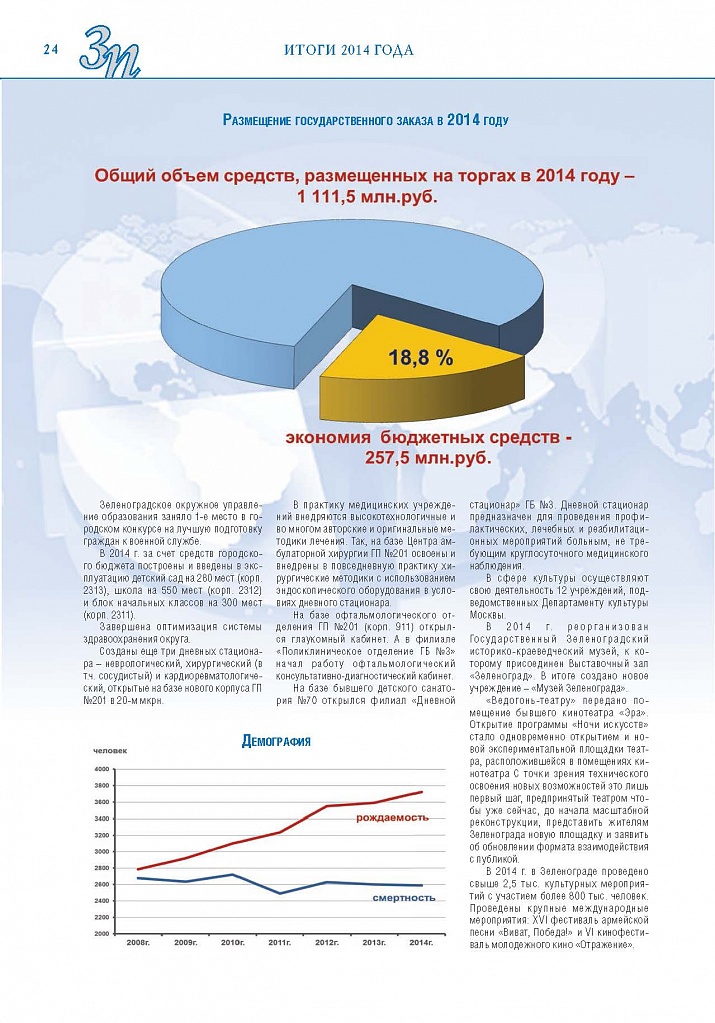 Имиджевое издание, в котором публикуются аналитические статьи и новости зеленоградского бизнеса, а также интервью с предпринимателями округа. Издается при поддержке префектуры ЗелАО с 2005 года. Распространение – префектура ЗелАО, образования самоуправления, ЦРП, Бизнес-центры, крупные бизнес-структуры.