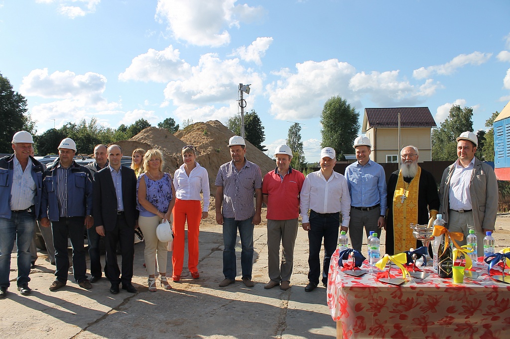 По окончании водосвятного молебна глава администрации Солнечногорского района, руководство компании и приглашенные гости выложили символичную кирпичную кладку новенькими мастерками. О стену цокольной части здания была разбита обязательная бутылка шампанского.