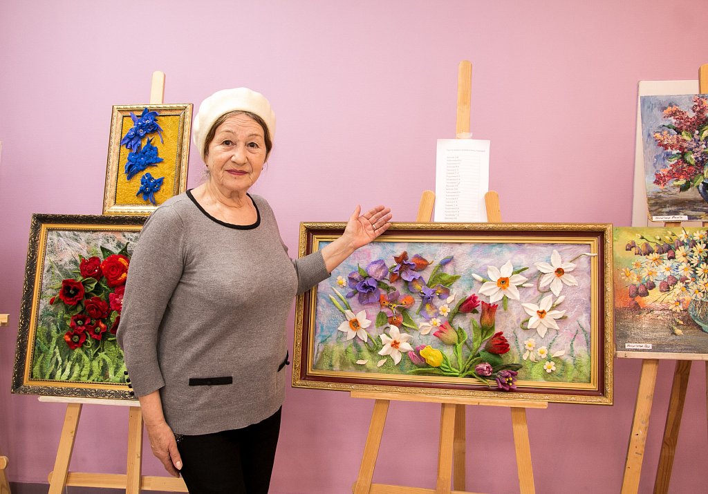 На выставке, которая открылась 29 марта в помещении клуба «Активное долголетие» представлены работы творческих направлений рисования и живописи, а также мокрого валяния из шерсти. В художественной части экспозиции свои работы на суд зрителей представили воспитанники изостудии педагога Светланы Кокориной. Глядя на выставочные полотна, невозможно поверить, что все эти портреты, пейзажи и натюрморты выполнены не профессиональными художниками, а некоторые из авторов до вступления в клуб живописью любовались исключительно, как зрители.