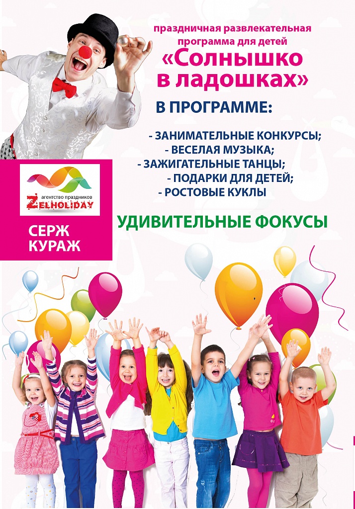 ВНИМАНИЕ! Приглашаем мальчишек и девчонок на детский праздник «Солнышко в ладошках». Он начнется в 11:00 на первом этаже гинекологического корпуса роддома. В программе: ростовые куклы, фокусы, занимательные конкурсы, веселая музыка и танцы, подарки для детей от агентства праздников «Zelholidey». Вход свободный.