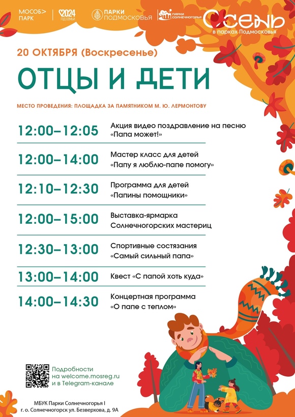 В воскресенье, 20 октября, в парке культуры и отдыха в Солнечногорске пройдет общеобластное мероприятие «Отцы и дети». Событие посвящено Дню отца.